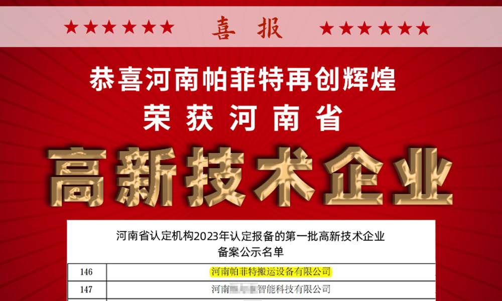 近日,經河南省認定報備、國家科學技術部下屬高新技術企業(yè)認定管理工作網備案公示,帕菲特順利通過河南省2023年度高新技術企業(yè)認定。
