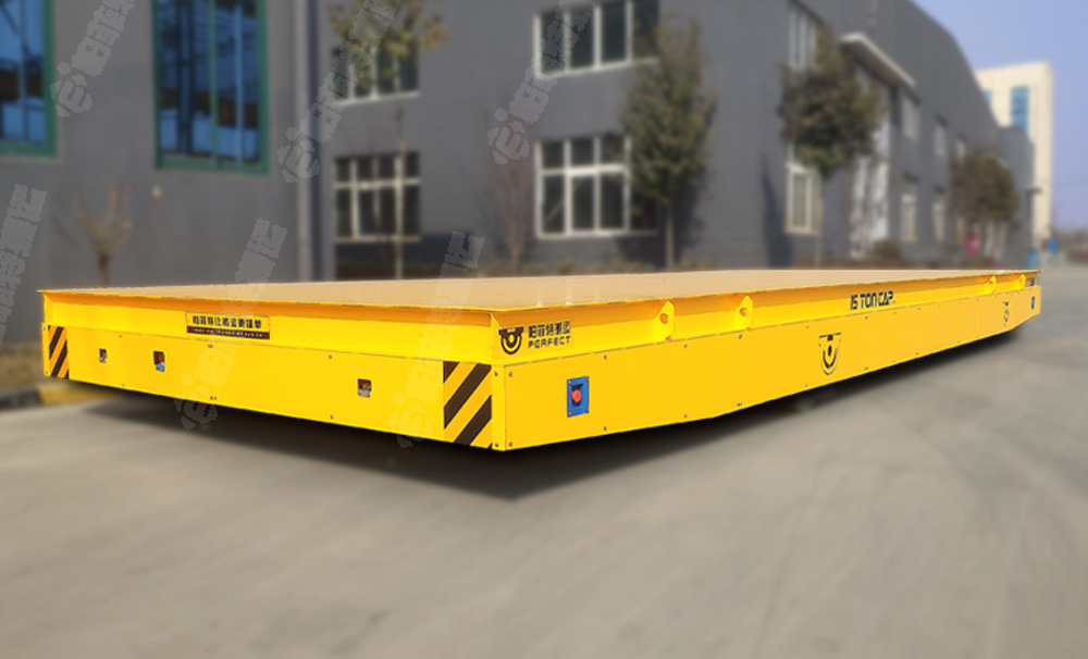 縱橫移動電動平車采用高強度鋼結構或板架結構設計,承載貨物并提供穩定平臺,可根據運輸的貨物進行定制,該車使用電力驅動和無線控制技術,通過蓄電池或電纜供電實現運行,采用四輪驅動或兩輪驅動方式,通過液壓伸縮缸或錐齒輪傳動系統實現雙向(橫向/縱向)自由切換,提升運輸效率。