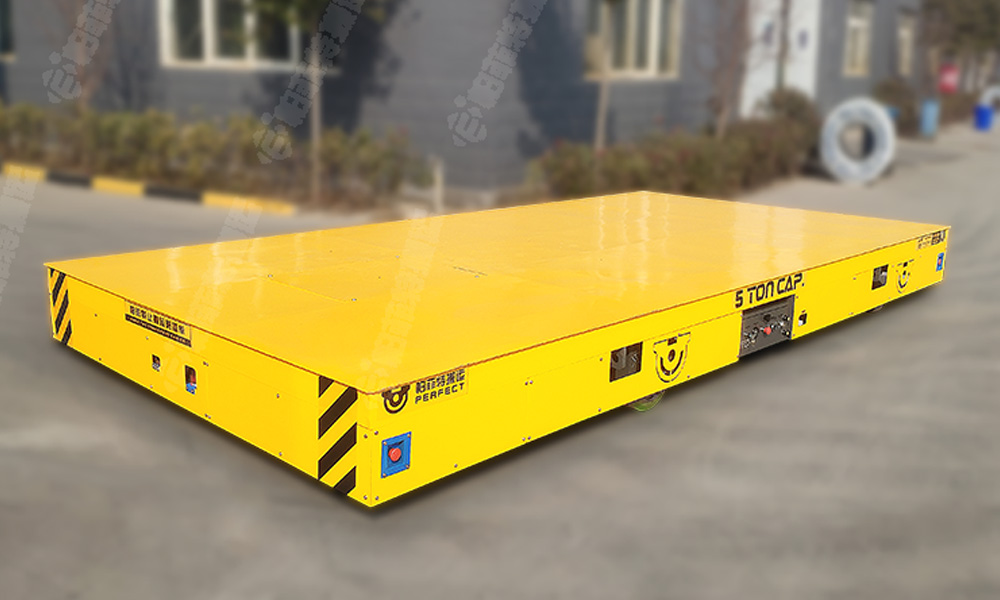 縱橫移動無軌平車由車架、驅動系統、控制系統和供電系統構成,車架承載貨物,驅動系統提供動力,控制系統精準操控方向與速度,供電系統則保障持續運行,各部分協同實現穩定搬運。