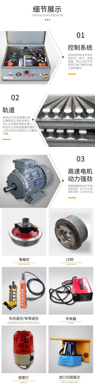 現代無軌電動平車一般配備多種安全保護裝置,如緊急制動、超載保護等,保障操作人員和貨物的安全。